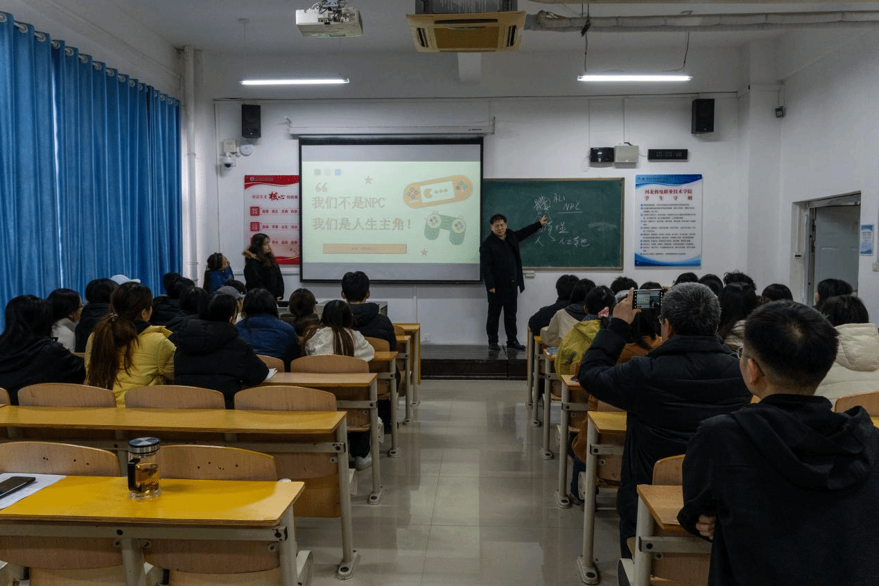 在新民楼515教室,王彦林认真听取了学生干部杨玺琳主持的“拒绝NPC,要做人生的主角”主题团课。课后,王彦林结合NPC与主角的设定,提出NPC与主角的区别在于“主体性”,进而分析了“人”与“人之本——礼”。寄语大家了解“自己从哪里来,要到哪里去”,在校期间要明确方向、树立目标、开展行动。