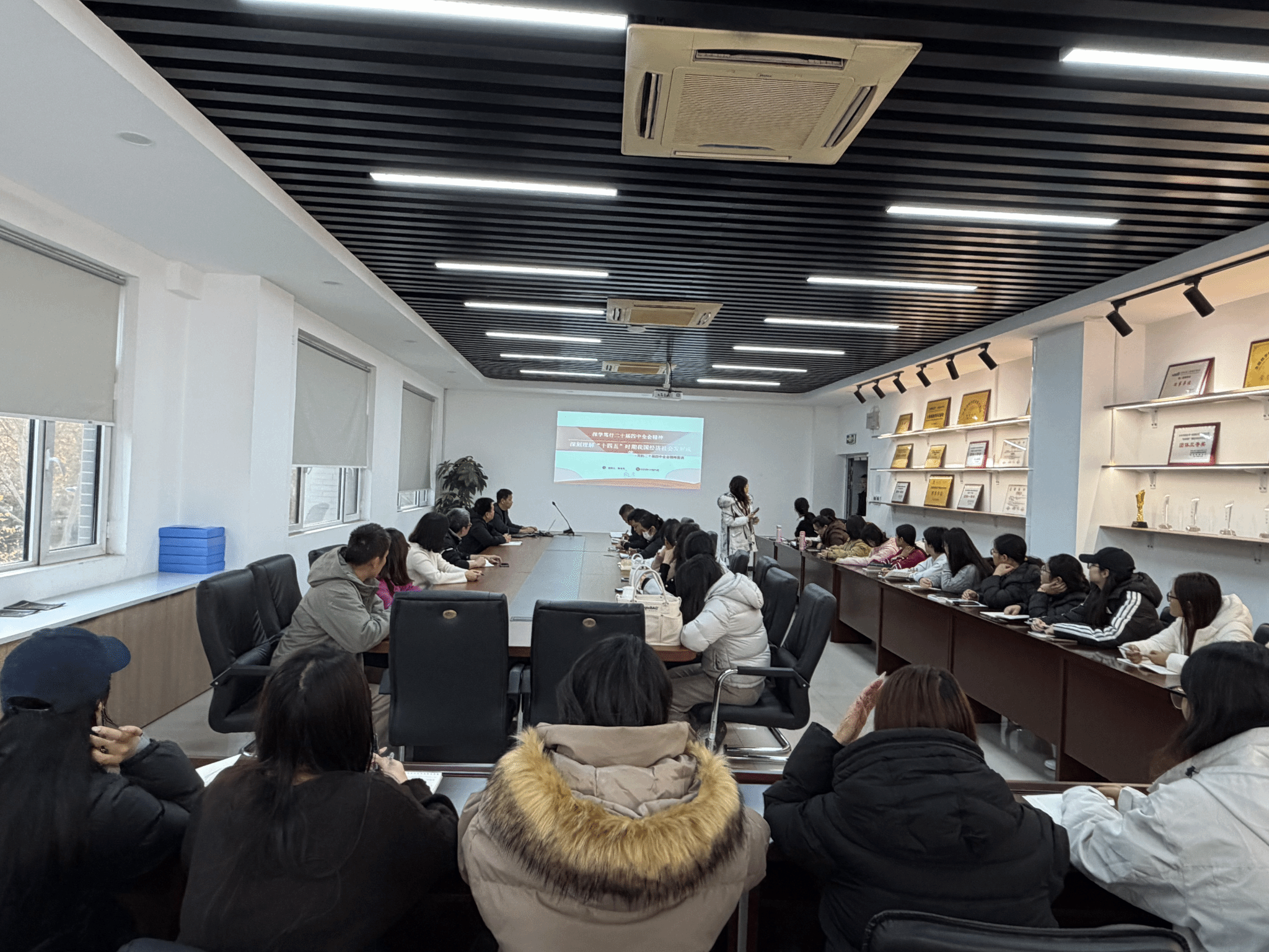 为贯彻学院《关于学习宣传贯彻党的二十届四中全会精神的通知》要求,深入学习党的二十届四中全会精神,12月1日,财会与管理工程系党总支书记陈文杰开展以“深入笃行党的二十届四中全会精神,深刻理解‘十四五’时期我国经济社会发展成就”为主题的学习宣讲活动,系全体党员及入党积极分子参加。