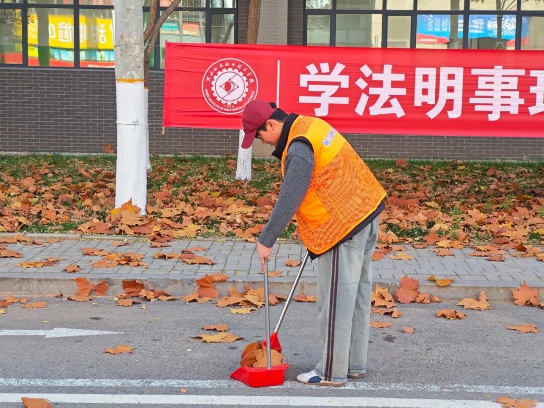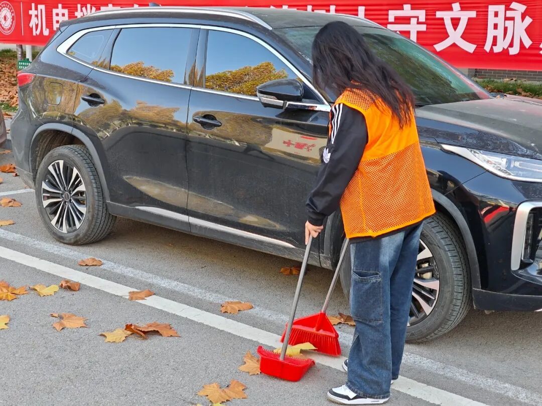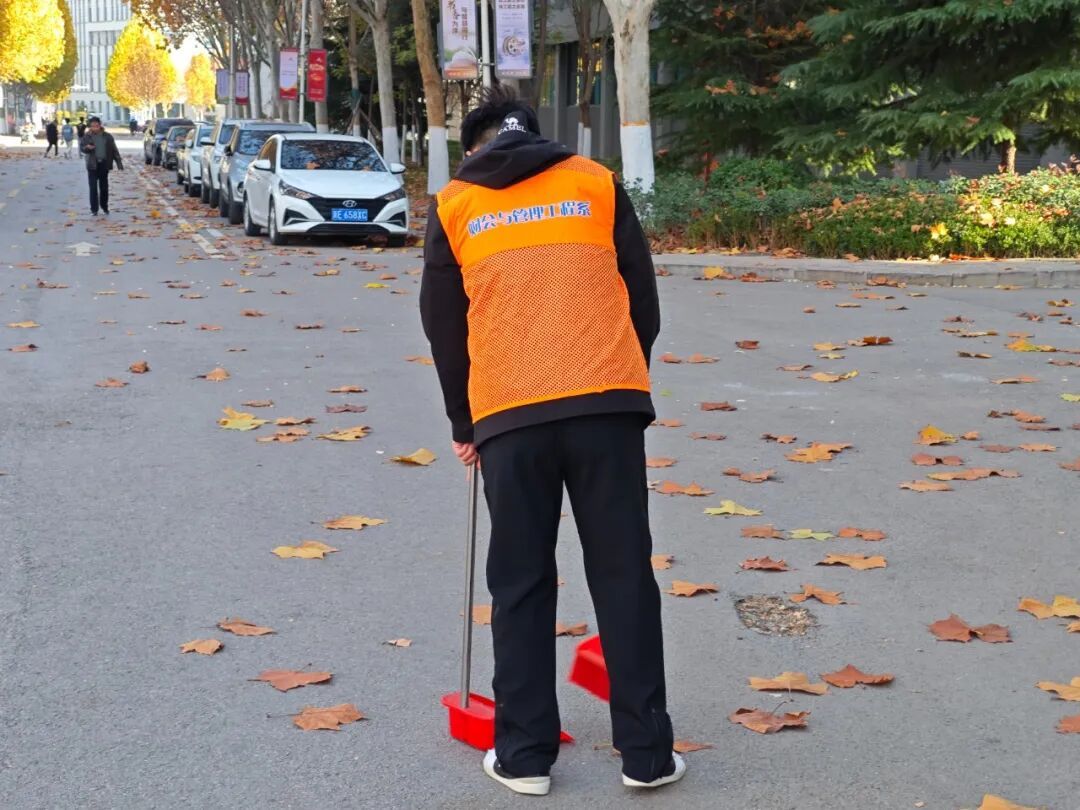 活动中,志愿者秉持细心认真的态度,手持清扫工具穿梭在校园各处:落叶堆积的角落逐一清理,路面的细小杂物仔细捡拾,不放过任何卫生死角,全心投入清扫工作。随着清扫的逐步推进,校园变得焕然一新,平整的道路干净整洁。