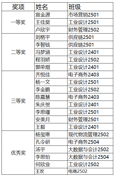 活动结束后,负责人根据活动要求评选出一等奖、二等奖、三等奖和优秀奖。