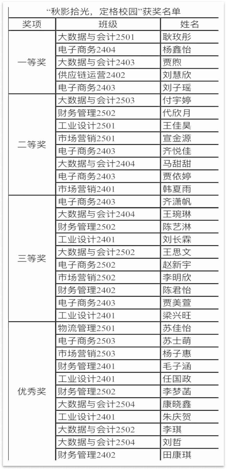 通过此次活动,不仅为同学们提供了展示创作力的平台,还以影像为纽带,使同学们在定格校园细节的过程中,加深了对校园生活的热爱与归属感。让“镜头里的美好”延伸到日常校园生活中。